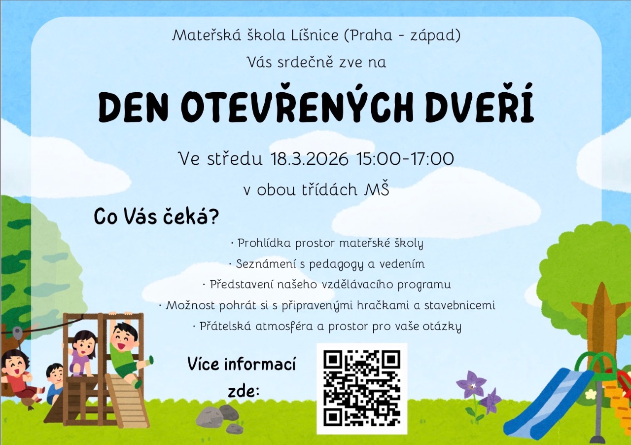 DEN OTEVŘENÝCH DVEŘÍ V MŠ ve středu 18.3.2026 od 15.00 do 17.00 hod.